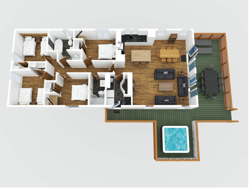 - Highlight Key Features: Does your lodge boast a stunning open-plan kitchen, a cozy fireplace, or an ensuite in every bedroom? 3D plans make these selling points pop, drawing the eye to the very features that differentiate your property.